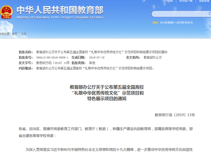 近日,教育部办公厅发布《关于公布第五届全国高校“礼敬中华优秀传统文化”特色展示项目的通知》。博物馆申报的“讲好中医故事,打造杏林宣教品牌”被确定为特色展示项目。我校是全国入围此项目的三所高职高专院校之一,是山东省入围此项目的三所院校之一,也是全国唯一入围此项目的医学院校。