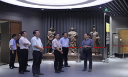 图七学校党委书记张立祥(右二)陪同国家中医药管理局副局长王志勇(右三)参观博物馆