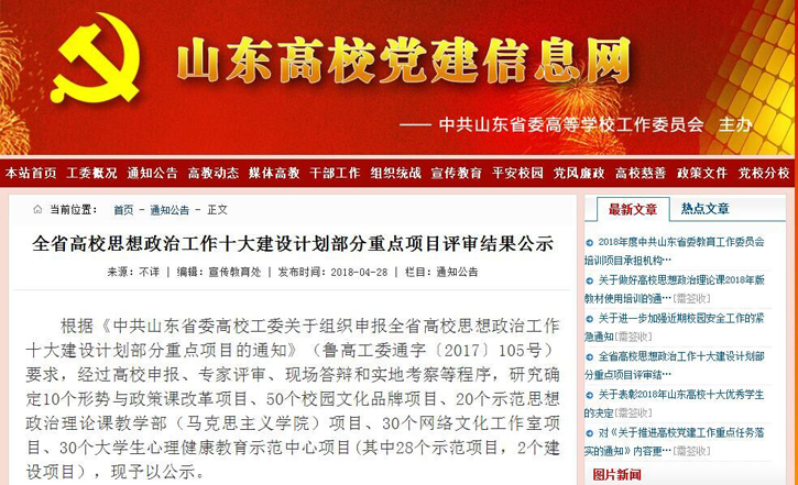 近日,山东省高校思想政治工作十大建设计划部分重点项目评选结果揭晓,我校山东省中医药文化博物馆入选山东省高校思想政治工作十大建设计划部分重点项目之校园文化品牌项目。