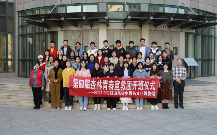 本次活动分为四个方面,首先由博物馆老师介绍博物馆相关情况,展现了山东省中医药文化博物馆丰厚的文化底蕴。其次,由博物馆馆长致辞,热烈欢迎新成员的加入并对宣教团后续工作做出规划指导,在场成员都认真聆听馆长的指导,领悟中医药文化的深刻内涵。然后,老师为同学们颁发工作证和讲解稿,在新老成员自我介绍中,宣教团的每一位成员都多才多艺,让成员间有了最初的认识和了解,以便日后相互配合,认真工作。最后,第四届杏林青春宣教团的各位老师和新老成员进行合影留念。