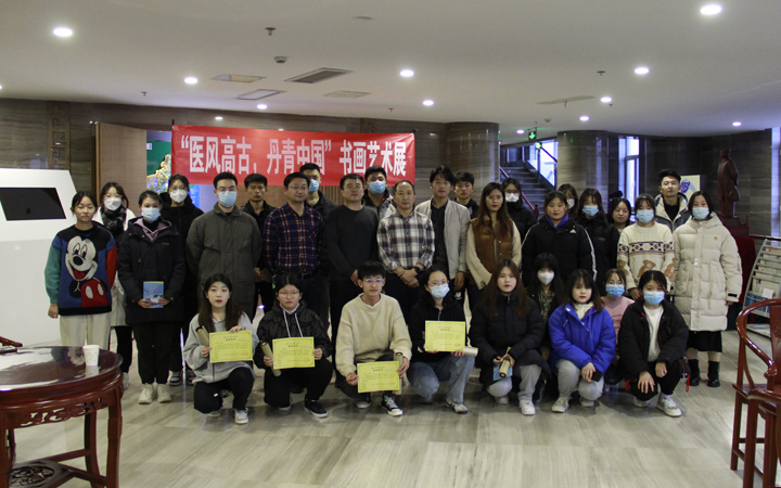 2021年12月24日,山东省中医药文化博物馆联合学校团委举办的“医风高古,丹青中国”书画艺术展迎来开幕式,我馆馆长宋永刚与团委负责人房光鑫出席,博物馆相关负责老师与作品作者参加仪式。