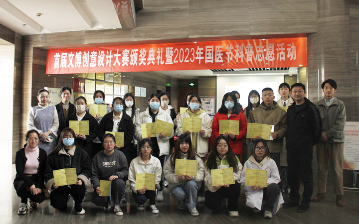3月18日下午,博物馆于一楼多功能厅举办首届文博创意大赛颁奖典礼暨2023国医节科普志愿活动,博物馆教师和获奖同学参与此次活动。