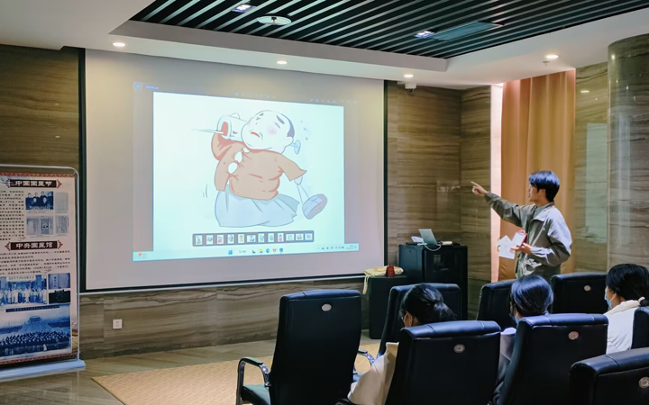 颁奖后,博物馆教师陈凯为参与活动人员做了文创和国医节的科普讲座,讲述了民国时期中医发展历史中的艰辛与笃定,结合当今的优秀传统文化传承发展和未来的大健康行业,以我馆设计的特定文创为抓手,为同学们打开一个不同角度了解中医药文化的窗口。