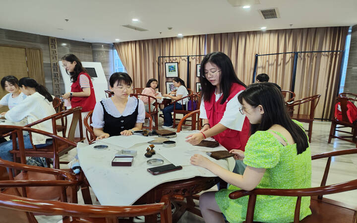 在拓片制作的过程中,师生们不仅感受到了传统技艺的精湛与魅力,更在亲手制作拓片的过程中加深了对中国传统文化的理解和热爱。一张张融合了纸与墨、蕴含着深厚历史文化底蕴的拓片在师生们的手中诞生,成为了他们与古代文明跨越时空的对话。