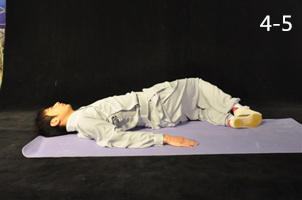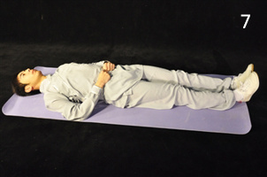 动作2~3反复操作3~5次,恢复至仰卧位。双手置于体侧。