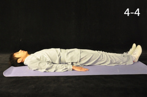 动作4:伸膝呈仰卧位,双手置于体侧,手心向下(图4-4)。